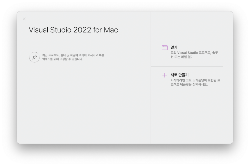설치해보니 설치 직후 Visual Studio 2022 라고 제목이 출력되었는데, 업데이트 후 Visual studio 2019 for Mac 으로 변경되었습니다.